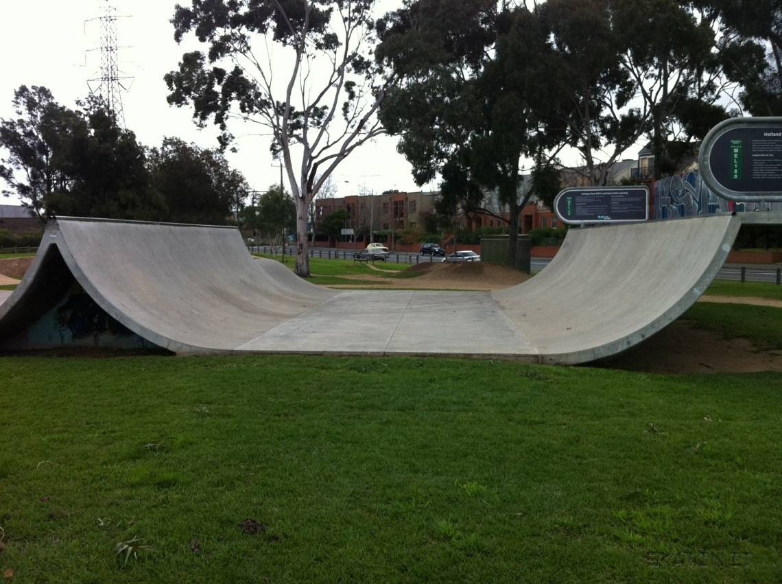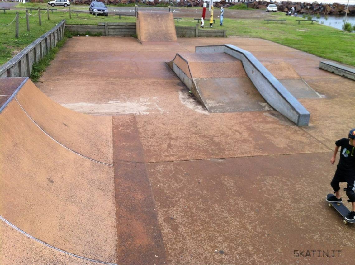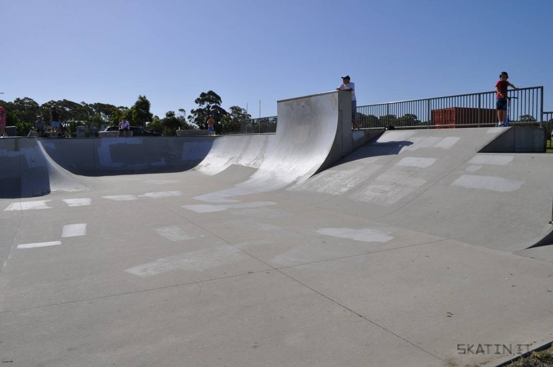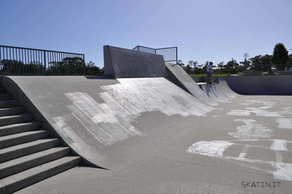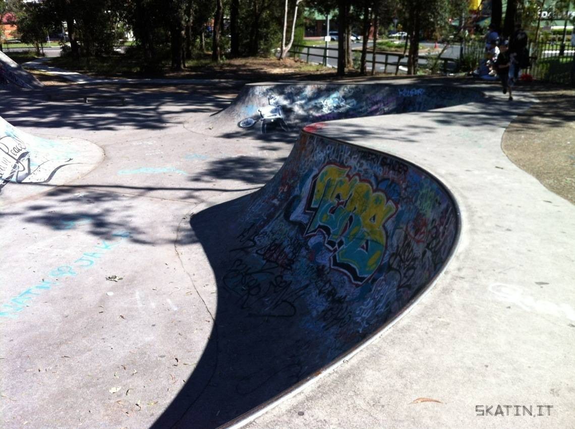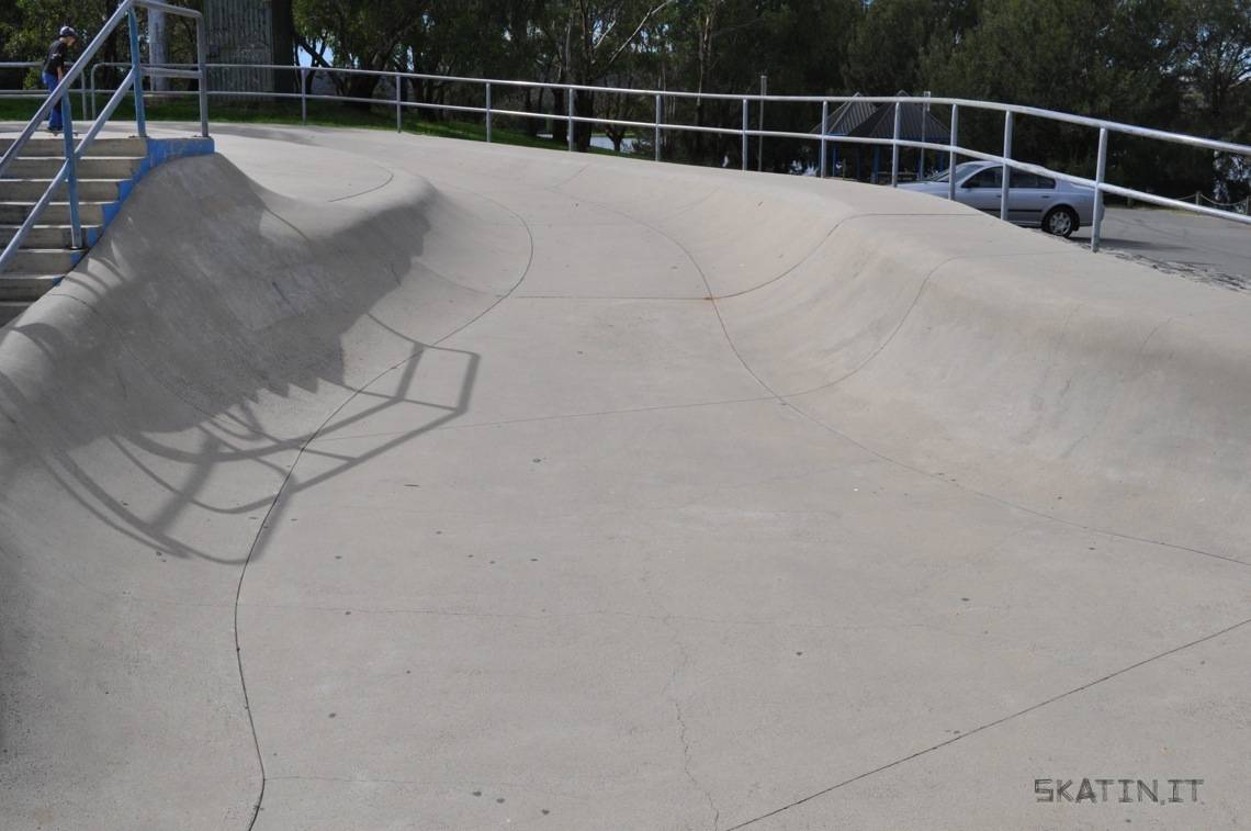 The eclectic setup starts with a couple of unique half-pipe relics that have a cement base but a metal surface. The large one is around 12ft and the smaller around 8ft and while they are fast and furious the surface is full of kinks and dents and edges that stick out. There’s also a decent amount of rust and gunk – just like the bark rings of of tree Im sure it has captured a rich history, its just not the best surface to skate on. The street section is a series of 5-6ft quarters (including a spine) scattered around the perimeter as well as a small central funbox. There’s also a fun 3ft mini hiding up the back and a weird snake run thing that ends with a mini half-bowl… eclectic right? If you’re in Canberra its worth checking out, but there’s a lot more on offer at Belco and Woden