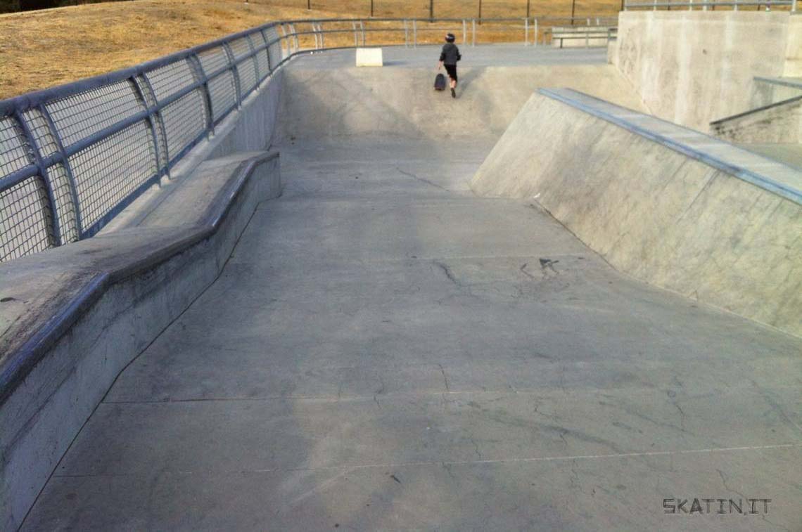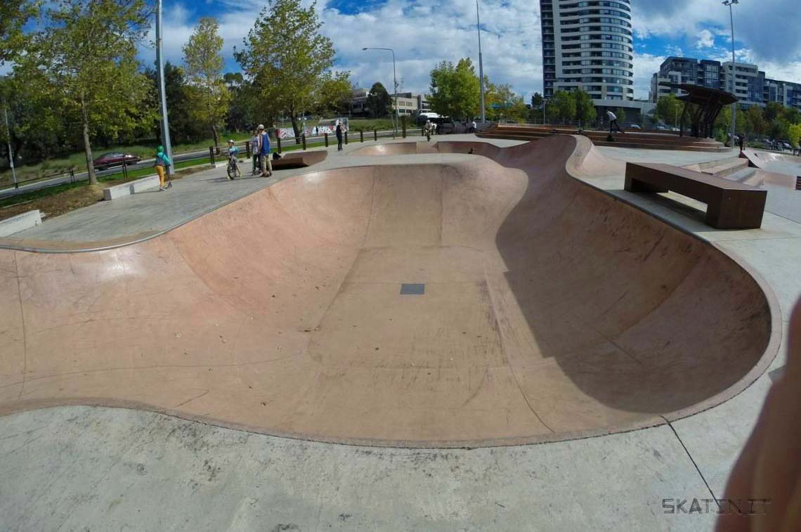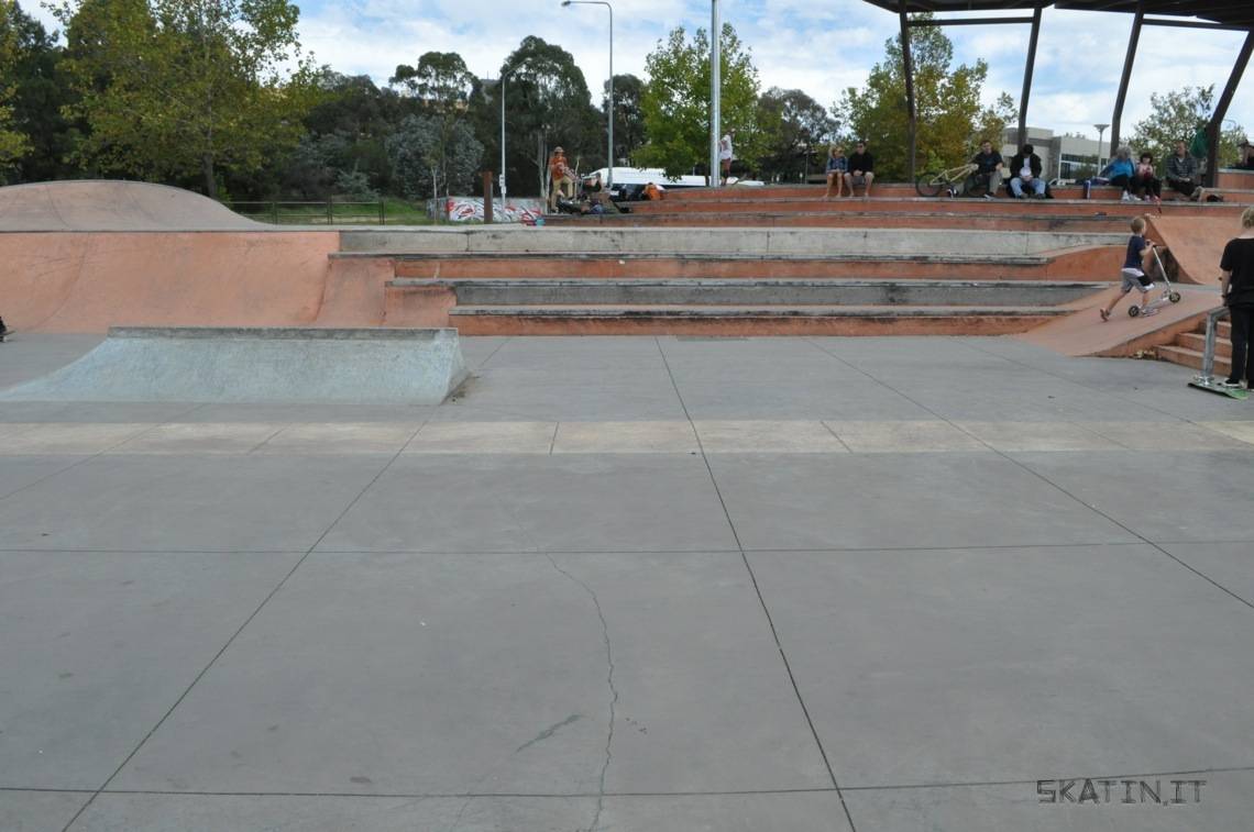 Rebuilt in 2011 by the amazing folks at Convic (see the details here http://www.convic.com/projects/belconnen) this is truly one of Australia best skateparks. It all starts at the western end with the original 10ft keyhole bowl before descending quickly (via a big stair set) into an epic snakebowl of roiling, curving, taco-ing tranny’s that wrap up in a stunning 8ft bowl. You can get lost in these virtual waves before finally hitting the lip and the deep-end. Once you exit the bowl you are immediately greeted with a cracking 4ft mini with a couple of extension, sure it has some big coping, but its still rock solid and when its not filled with scooter kids you can have a lot of fun here.