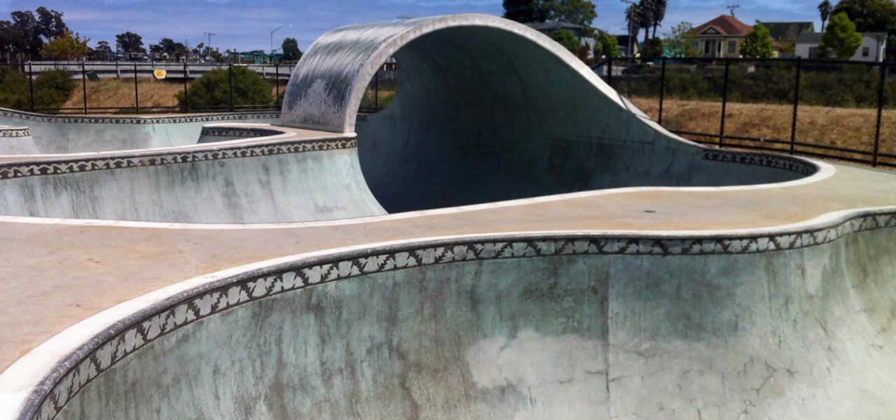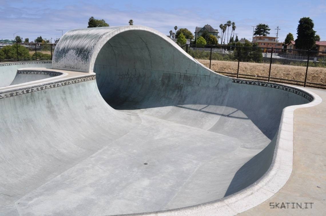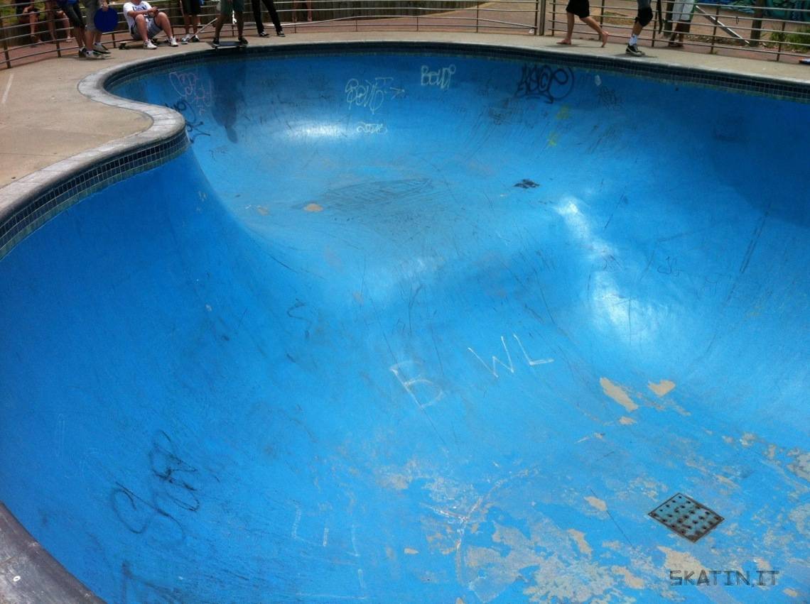 Bowl: Trusty old school style cement pool with two levels. The shallow end starts at 6ft with a quick transition. The and deep end sinks to around 10ft. The coping matches the pool style roots and the surface is blisteringly fast. A solid skate.