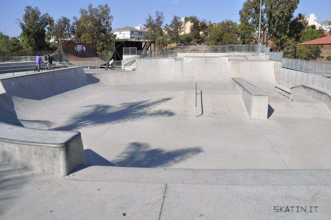 An odd little suburban skatepark sitting right alongside the 5 in North San Diego. I say odd as it looks like they either forgot to build half of the park, or they just ran out of funding part way through the construction. (update: in fact the skatepark used to feature a bunch of wooden minis and transitions that have since been removed… which explains why its felt so half done).