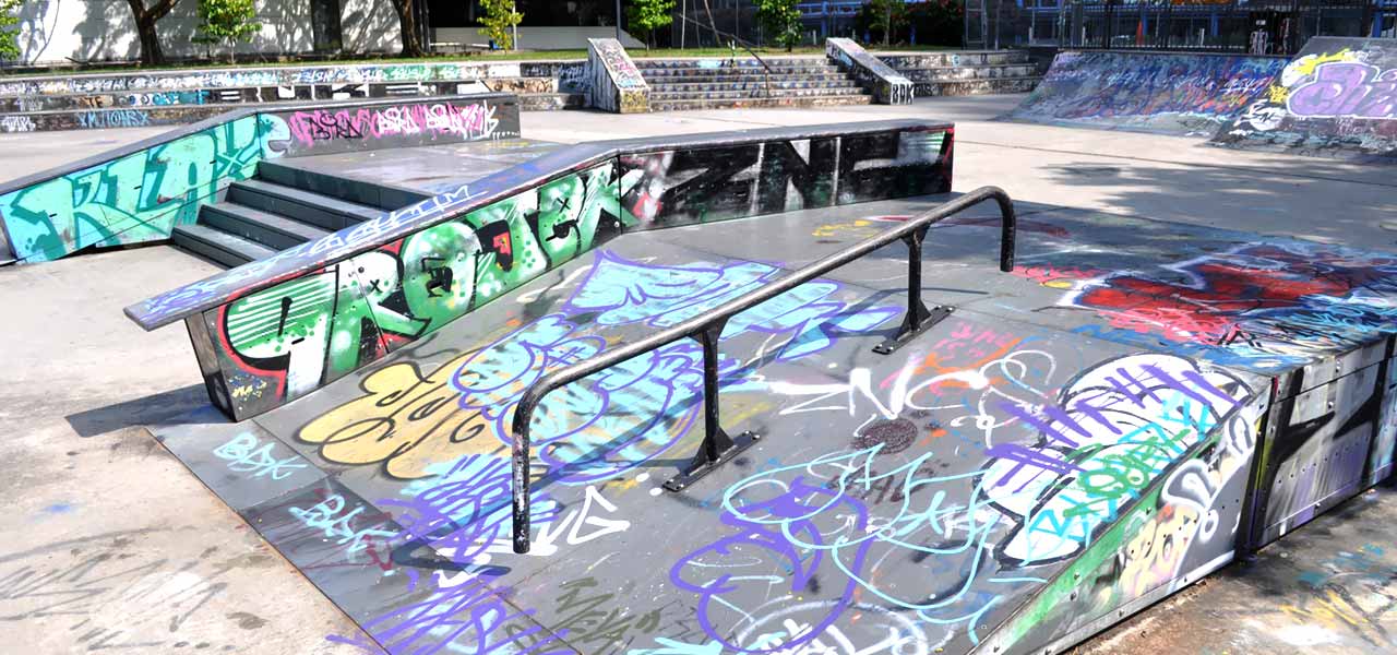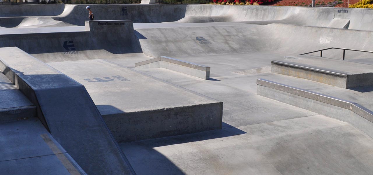 A solid skatepark with a well thought out design and great for skaters of all skill levels. The only gripe would be the quality of the edging and coping thats a bit rough and chunky in parts…. but all part of the fun.