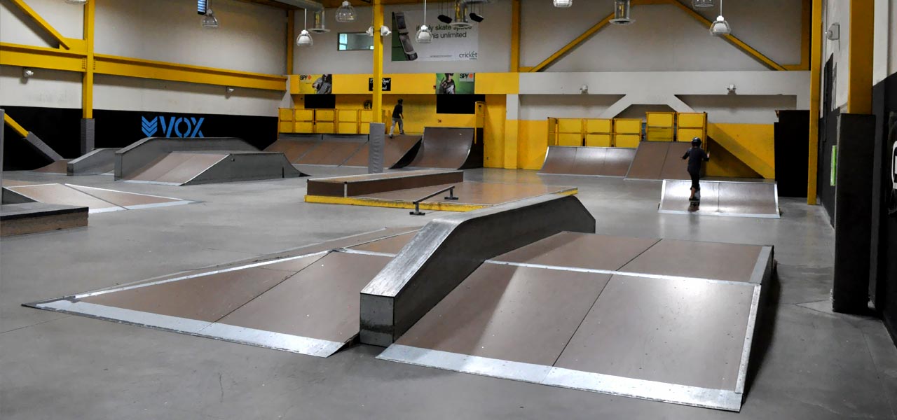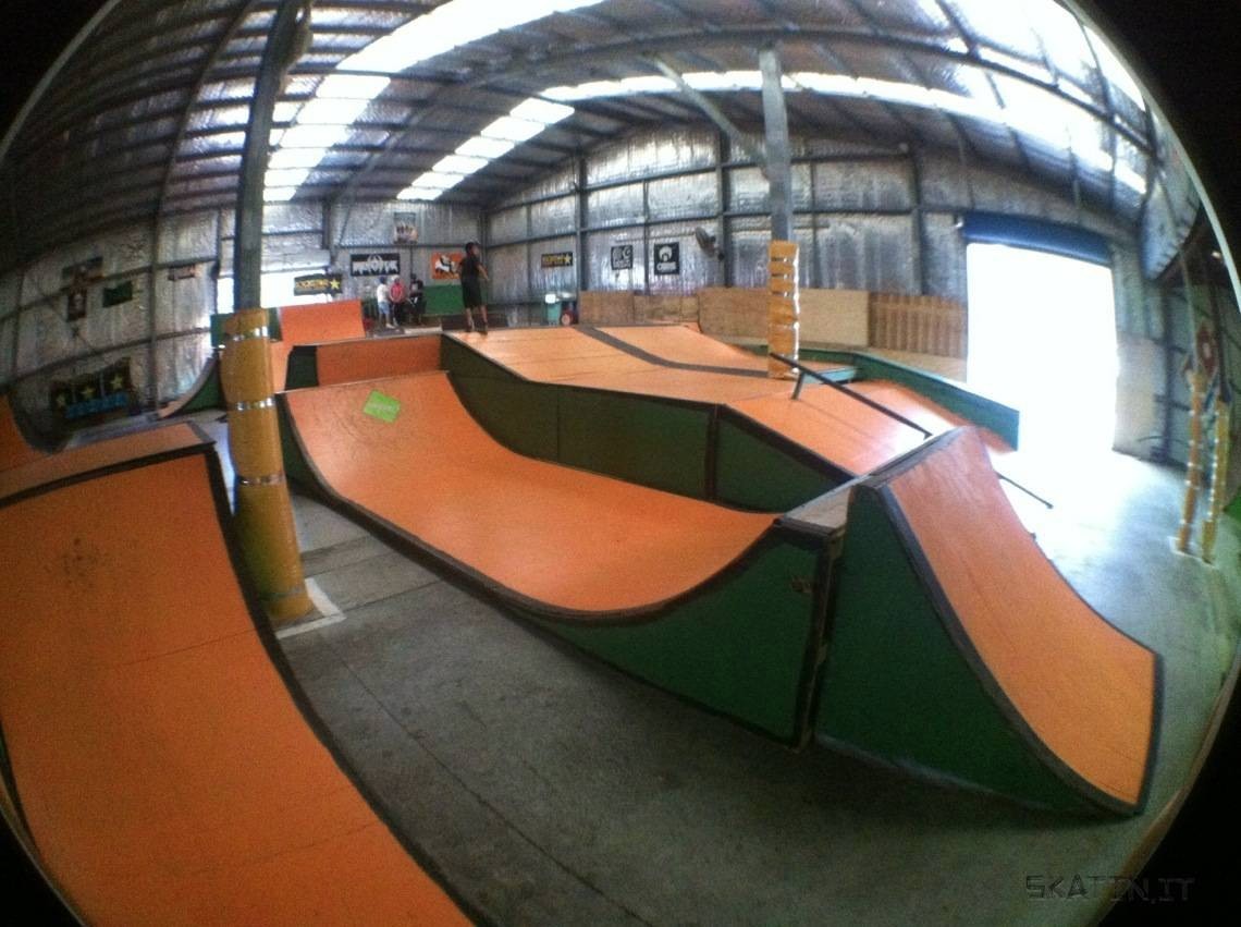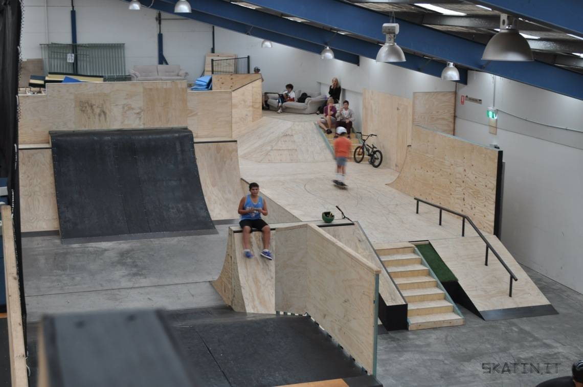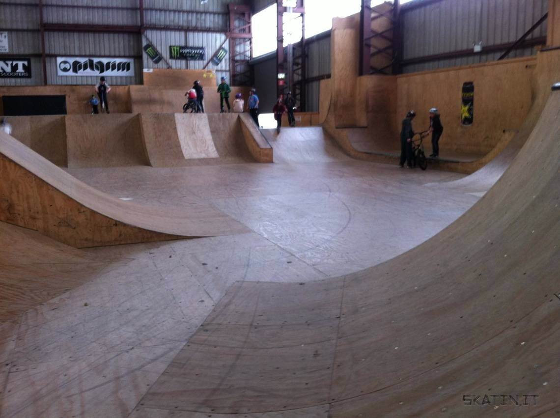 Rampfest is a relatively large purpose-built, plywood indoor skatepark. It features a wide range of large quarters and mini-ramps (4-7ft), a beautiful 5ft bowl, small spined section, various banks and a massive roll-in that leads to a big quarter and foam pit.