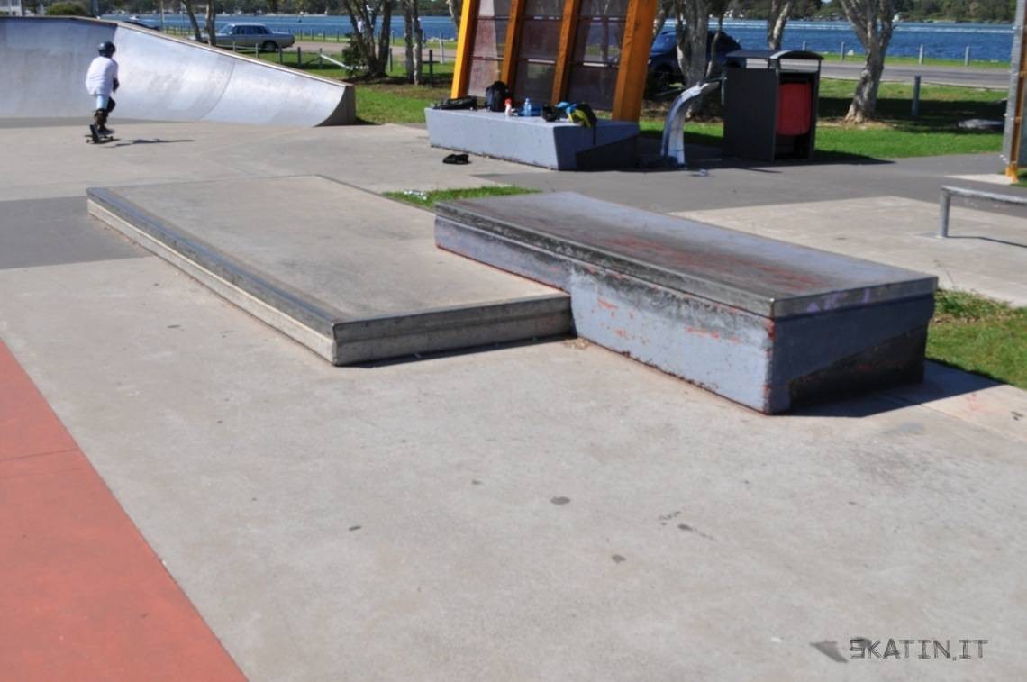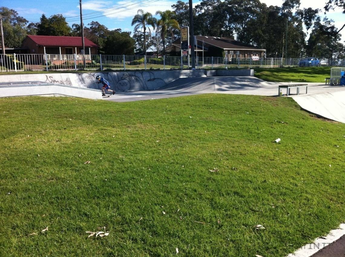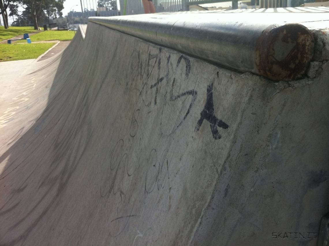 Metford Skatepark is another suburban pre-fab affair. A bank of 4.5ft quarters at each end (some with coping, some simply roll-ins) and a central funbox with an elevated slide rail. The surface is pretty rough and it’s filled with debri from the surrounding trees and the coping is almost cute! As we’ve seen again and again these kind of skateparks were an easy way for local Hunter Valley councils to get something up quickly and cheaply. They’re all slightly different but are based on the same concept and you can usually have a reasonable session… you’d probably just never go back.