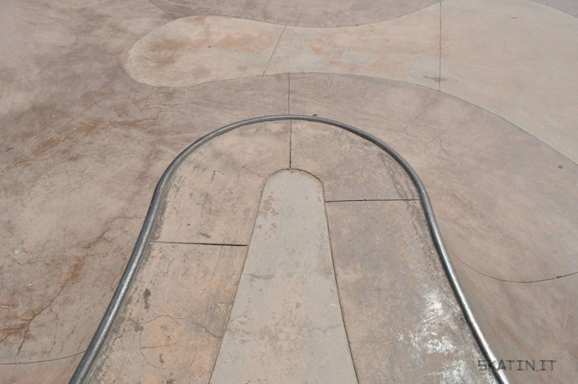 Medium bow twist and turns with a really interesting shape and goes from 4-7ft gradually as it winds around the bend. The shallow end has an open rounded. Solid coping throughout and again really good transitions.