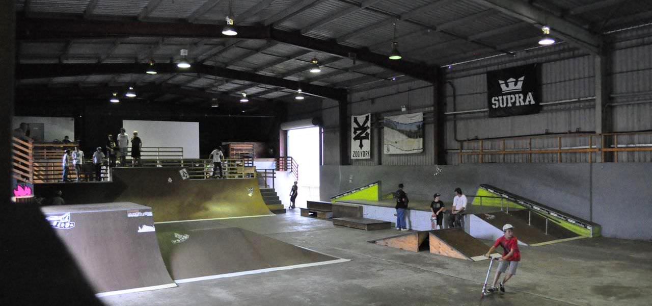 Monster is one of Sydney’s best known skateparks and features what is considered to be the best vert ramp in the country. It stands at a whopping 14.5ft high and spans 68ft across and features extension on one side and mega roll-ins on the other. It’s been skated by some of the worlds best skateboarders and is regularly used for international competitions. The big vert ramp forms part of the main outdoor area of the skatepark which also a cracking 6ft spined mini that has all sorts of extras including an 8ft extension, a 10ft over-vert extension and a bank section with rails on the wide platform. The surface is thick, super fast marine-ply but can be slippery and burns a bit when you slam. The coping is massive and not for the faint at heart. Both of these ramps are incredibly well built and maintained but it’s worth noting they really are for more experienced skateboarders.