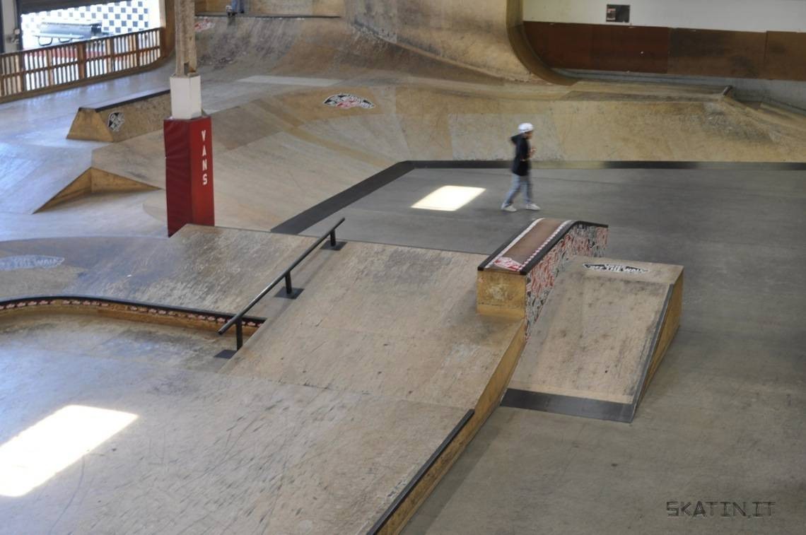 Stunning indoor/outdoor skatepark that is part of the huge Vans store in downtown Orange County. This is basically a huge warehouse so filled with skateparkery that it’s ridiculous to try and give every detail. But here we go…